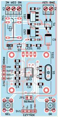 Dla ułatwienia obsługi czytnika, a także dla ewentualnej jego aplikacji, wykonano nieskomplikowany sterownik – jego schemat omówiono wcześniej. Sterownik zmontowano na dwustronnej płytce drukowanej.