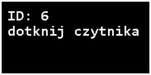Na górze wyświetlacza zostanie pokazana informacja o numerze ID pod którym zostanie zarejestrowany nowy odcisk oraz polecenie dotknięcia czytnika. Ten ekran pokazano na rysunku 5. Zgodnie z wyświetlanymi poleceniami należy 3 krotnie tym samym palcem dotknąć skanera i cofnąć palec. Na koniec zostanie wyświetlona informacja o sukcesie lub błędzie. W tym drugim przypadku baza nie zostanie zmieniona i całą operację rejestracji nowego odcisku należy powtórzyć.