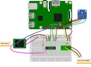 Z punktu widzenia elektrycznego, kontaktron zachowuje się tak samo, jak np. przycisk. Dlatego też sygnały z anemometru monitorować można jak naciskanie przycisku. Aby mierzyć prędkość wiatru wystarczy mierzyć ile razy na sekundę do wejścia GPIO w Raspberry docierają impulsy z kontaktronu. Anemometr wyprowadzony jest na pinach 3 i 4 złącza RJ11. Podłączamy jeden z nich do masy, a drugi do wejścia GPIO 5 w Raspberry Pi. Do odczytu stanu układu wykorzystywać będziemy pythonową bibliotekę gpiozero. Potrzebny jest nam prosty skrypt; tworzymy plik w /home/pi/weather-station/wind.py, w którym wpisać możemy nasz program przedstawiony na listingu 2.