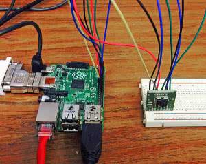 Kolejnym krokiem jest podłączenie do komputera modułu kamery FLIR Lepton. Warto kupić moduł Lepton w postaci modułu deweloperskiego - od razu przylutowanego do płytki drukowanej, z wyprowadzonymi wszystkimi potrzebnymi sygnałami na złączach szpilkowych. W ten sposób możemy połączyć moduł kamery z komputerem przy użyciu płytki stykowej lub zworek. Moduł z kamerą FLIR Lepton pokazano na rysunku 1. Moduł z kamerą potrzebuje do komunikacji dwóch interfejsów szeregowych - SPI do przesyłania danych oraz I2C do przesyłania informacji kontrolnych. Komputer Raspberry Pi wyposażony jest w oba te interfejsy oraz duże wsparcie programistyczne do tworzenia oprogramowania w postaci gotowych bibliotek do języków takich jak C i Python.