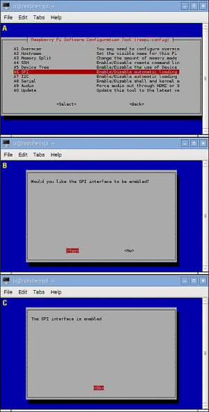 Raspberry Pi ma 40-pinowe złącze, na którym wyprowadzono m.in. linie interfejsów SPI oraz I2C, a także zasilanie i masę. Na rysunku 2 pokazano, gdzie znajdziemy poszczególne sygnały SPI (MOSI, MISO, CLK i CS) oraz I2C (SDA i SCL). Łączymy je w wybrany przez siebie sposób z odpowiadającymi sygnałami po stronie modułu z kamerą termowizyjną. Pamiętajmy, aby dołączać moduł do kamery po odłączeniu zasilacza od Raspberry Pi. Na rysunku 3 pokazano podłączony moduł z kamerą na płytce stykowej. Po podłączeniu wszystkiego do komputera Raspberry Pi możemy ponownie uruchomić komputer (podłączyć zasilanie do portu microUSB) i przejść do konfiguracji.