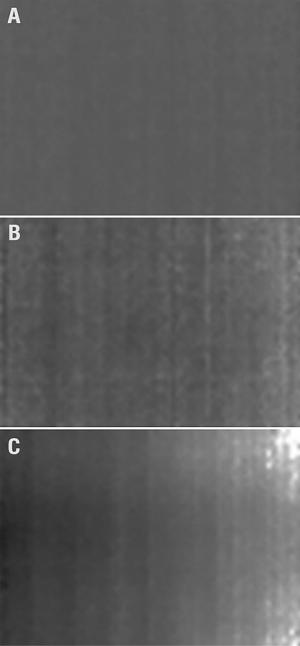 W LeptonThread.cpp znajdziemy także odwołanie do funkcji lepton_perform_ffc(). Służy ona do uruchomienia funkcji FFC - rekalibracji sensora, mającej na celu poprawienie jednorodności jego pracy. FFC uruchamiać należy w momencie, gdy obraz, jaki widzimy, przypomina środkowy lub prawy obraz, pokazany na rysunku 6. Implementacja funkcji lepton_perform_ffc() znajduje się w pliku Lepton_I2C.cpp, który pokazany jest na listingu 3. Funkcja lepton_perform_ffc() uruchamia jedynie połączenie z kamerą Lepton (poprzez interfejs I2C) i wykorzystuje funkcję z SDK, które dostarcza FLIR, wraz z samą kamerą. W pliku Lepton_I2C.cpp oraz Lepton_I2C.h zaimplementować można oczywiście i inne funkcje, jakie dostępne są w SDK.