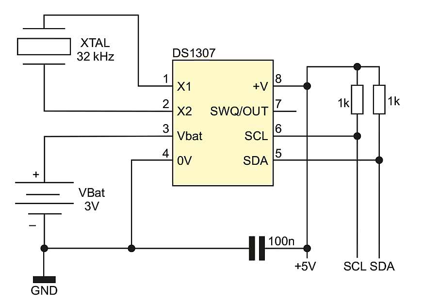 Rysunek 1. Schemat przykładowego modułu zegara czasu rzeczywistego opartego na układzie scalonym DS1307