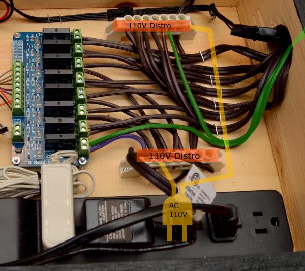 - Moduł przekaźników elektronicznych. Autor użył ośmiokanałowego modułu SainSmart, dostępny na Amazonie. Przekaźniki elektroniczne w układzie mają maksymalny prąd 2 A, co jest wartością wystarczającą do zasilania chyba dowolnych lampek choinkowych. Należy unikać w tym systemie sterowania przekaźnikami elektromechanicznymi, ponieważ przekaźniki takie są głośne podczas pracy (klikają w czasie przełączania),