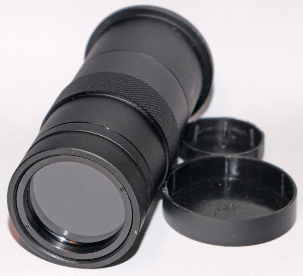Obiektywu należy poszukać na aukcjach zagranicznych, jest tam sporo obiektywów do systemów wizyjnych. Szukając hasła: obiektyw do mikroskopu, trafiłem na coś o opisie „8X-100X Zoom C-mount Lens Adatper For Industry Microscope”. W zależności od dostawcy obiektyw kosztuje od 130...200 PLN z wysyłką i doskonale nadaje się do budowy mikroskopu dla elektronika. Wygląd obiektywu zastosowanego w modelu pokazano na fotografii 1.