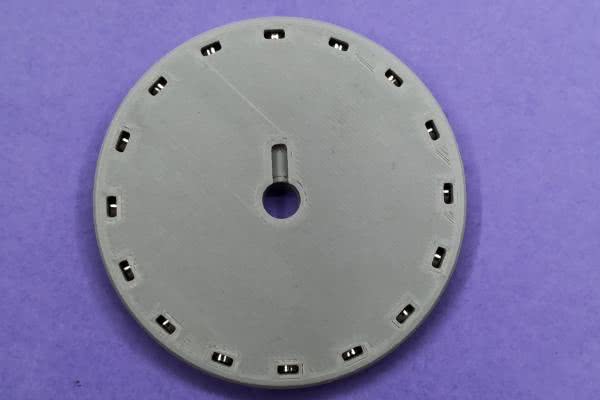 Bardzo istotnym elementem sterownika są koła z magnesami, gdyż to one regulują rytm w urządzeniu. Sterownik posiada osiem takich kół. Po wydrukowaniu elementów, w każdym z kół osadzane jest 16 płaskich magnesów neodymowych 4×1,5 mm – służą one przytrzymywaniu magnetycznych sfer (o średnicy 5 mm) w ich gniazdach na obwodzie koła. Instalując magnesy w kole należy pamiętać o odpowiedniej ich biegunowości – wszystkie powinny mieć biegun N skierowany do środka koła, a biegun S do zewnętrza. Zmontowane koło z magnesami pokazane jest na fotografii 1.
