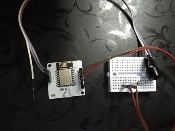 Dodatni biegun buzzera podłączamy do linii zasilania, ujemny natomiast do pinu 1 modułu Bolt IoT. W ten sposób, za każdym razem, gdy na tym pinie pojawi się stan niski, różnica potencjałów na buzzerze równa będzie, w przybliżeniu napięciu zasilania, co spowoduje, że zostanie on uruchomiony. Fotoopornik podłączony jest do pinu A0 modułu. Drugi pin fotoopornika podłączyć należy do masy. Pi A0 jest wejściem analogowym modułu, więc takie podłączenie pozwoli na pomiar napięcia na oporniku, a w konsekwencji na oszacowanie rezystancji i natężenia oświetlenia. Autor zastosował fotoopornik N5AC501085 o rezystancji nominalnej 5 MΩ i odpowiedzi spektralnej podobnej do ludzkiego oka. Można zmienić go na inny element, pod warunkiem zachowania podobnie wysokiej rezystancji nominalnej elementu i czułości na światło widzialne.