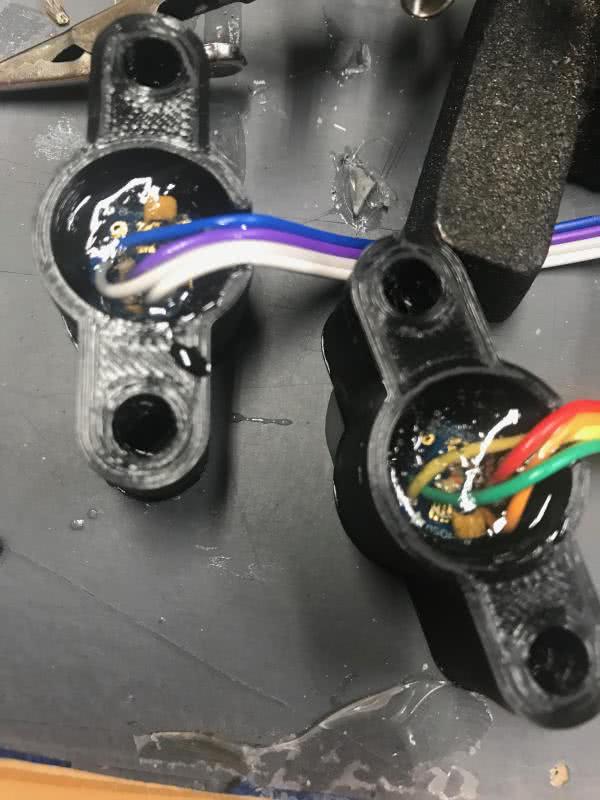 Dla czujnika została zaprojektowana i wykonana na drukarce 3D obudowa, która umożliwia jego całkowite zamknięcie (zalanie) w przezroczystej żywicy epoksydowej (fotografia 4).
