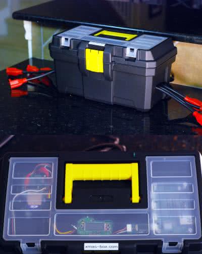 Urządzenie Xmas-box posiada 8 kanałów (gniazdek zasilających 230 V), które mogą sterować oświetleniem w różnym trybie. Potrafi emulować wskaźnik wysterowania, zapalać światła w różnych sekwencjach lub losowo. Tryby są częściowo synchronizowane z muzyką – podczas odtwarzania kolęd, co 10 sekund zmieniany jest tryb zapalania świateł, aby animacje nie były zbyt monotonne.