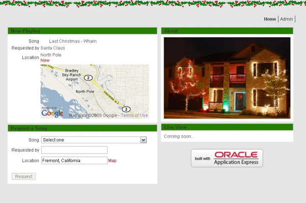 Kolejkowanie utworów realizowane jest w aplikacji internetowej. Do stworzenia interfejsu webowego autor korzysta z Oracle Application Express (APEX), ponieważ jest to jego ulubione narzędzie do szybkiego tworzenia aplikacji internetowych. Ale system może być również zarządzany przez dowolne inne rozwiązanie internetowe wykorzystujące bazę danych (np. Linux z Apache, MySQL i PHP, tak zwany pakiet LAMP). Na rysunku 1 pokazano panel aplikacji webowej, jaka steruje omawianym systemem.