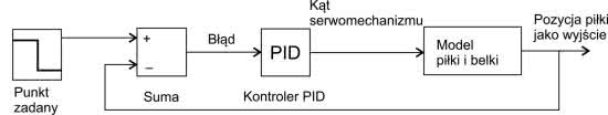 Zadaniem układu jest ustawienie piłeczki w zadanym miejscu na belce tak, aby pozostała w bezruchu.