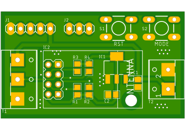 Na płytce znajduje się także stabilizator IC1. Jest to liniowy stabilizator LDO, który stabilizuje napięcie zasilania dla ESP-01 do wartości 3,3 V z zasilania wejściowego o napięciu 5 V. Stabilizatorowi towarzyszą dwa kondensatory, które są konieczne do zapewnienia mu stabilnej pracy.