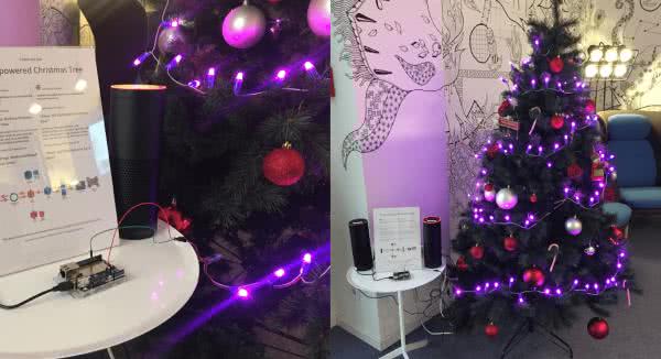 - Użytkownik rozmawia z Alexą i wydaje mu komendę „open the christmas tree”. Magia rozpoznawania mowy z udziałem algorytmów neuronowych, dzieje się po stronie usługi chmurowej Alexa.