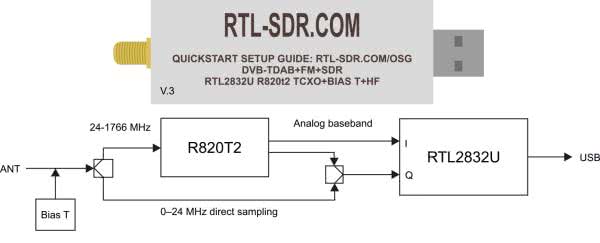 Drugim kluczowym elementem systemu jest moduł RTL-SDR. Jest to odbiornik radiowy definiowany programowo zbudowany na chipsecie RTL2832 firmy Realtek. Został on przystosowany do pracy jako odbiornik telewizji naziemnej DVB-T, jednak w 2012 roku odkryto, że ma on o wiele większe możliwości. Może on transferować „surowe” próbki sygnałów I/Q do komputera. Na rynku dostępnych jest wiele urządzeń USB do odbioru sygnałów DVB-T, ale jeśli chcemy na poważnie zająć się tym tematem, warto sięgnąć po specjalizowany RTL-SDR, zaprojektowany specjalnie do takich aplikacji. Najnowszą wersję tego urządzenia pokazano na rysunku 1.