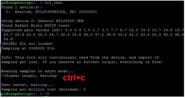 Powinien wyświetlić się komunikat taki, jak pokazano na rysunku 3. Z programu rtl_test wychodzimy, naciskając Ctrl+C.