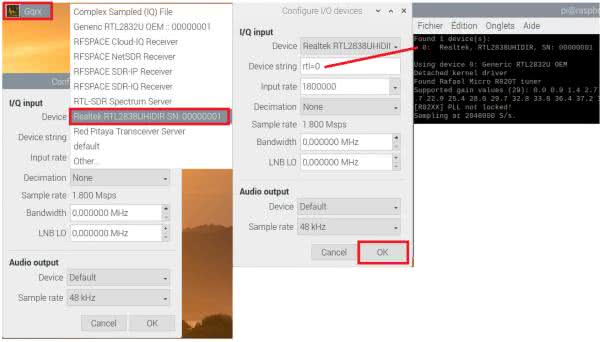 Aby słyszeć dźwięk z programu, należy do wyjścia audio Raspberry Pi podłączyć głośniki. Następnie uruchamiamy program i z menu wybieramy RTL-SDR. Zauważmy parametr rtl=0, który widać również w informacjach z rtl_test (rysunek 5). W tym menu ustawiamy także urządzenie wyjściowe, szczególnie jeśli ma być inne niż domyślne.
