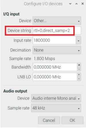 Aby przejść z pasma VHF do HF, najlepiej jest wyjść z GQRX i zrestartować program. Przy kolejnym uruchomieniu musimy do parametrów dodać direct_samp=2 (rysunek 7).