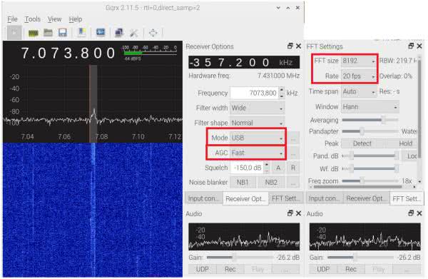 W pasmie 40 metrów warto nasłuchiwać również w trybie cyfrowym – kodowanie FT8. Przykładową konfigurację do odbioru w tym trybie pokazano na rysunku 8.