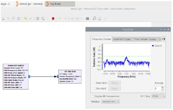 Wystarczy uruchomić program, aby zacząć programować system przetwarzania lub wczytać gotowy plik. Można, jako źródło sygnału, skonfigurować np. stały sygnał, jak z generatora czy sygnał odbierany z odpowiednio skonfigurowanego RTL-SDR (rysunek 11).