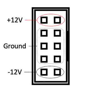 Montując wtyczkę zasilania, należy zwrócić uwagę na orientację wycięcia wtyczki, dzięki któremu można podłączyć ją tylko w jednej orientacji. Napięcie Vin Arduino Nano podłączone jest do linii 12 V, więc niepoprawne podłączenie gniazda może spowodować podanie tam –12 V i w konsekwencji uszkodzenie modułu.