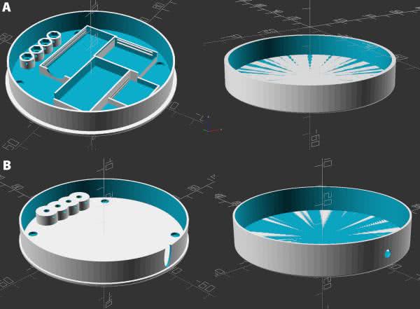Obudowa została wykonana w technice druku 3D. Do wydrukowania są dwie części – jedna dla samego spinnera Solarfidget (rysunek 1a), a druga dla ładowarki urządzenia (rysunek 1b).