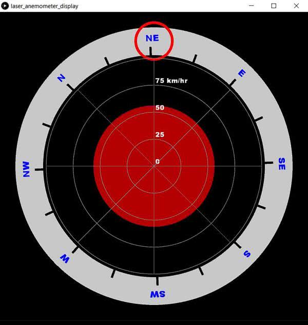 Anemometr składa się z plastikowej rury, zawieszonej w centralnym punkcie, która rusza się wraz podmuchami wiatru. Jej przekrój jest okręgiem. W jego centralnym punkcie zainstalowane są laserowe dalmierze, które mierzą odległości od centralnego punktu okręgu do ścianek. Punkty, w których promienie lasera dotykają ścianek wewnątrz rury, definiują pewną cięciwę tego łuku. Długość tej cięciwy zmienia się, gdy rura zostaje poruszona przez wiatr – cały proces obrazują fotografie 1a, b i c.