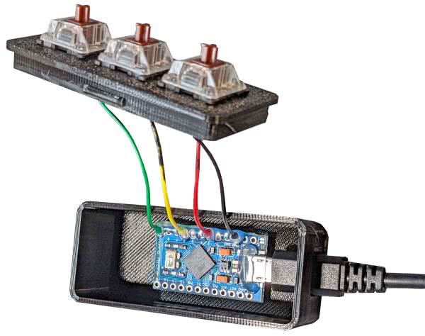 Ten prosty system pozwala na szybkie wprowadzanie skrótów klawiszowych jednym kliknięciem. Autor układu użył go do obsługi telekonferencji na platformie Zoom, ale nic nie stoi na przeszkodzie, aby zastosować go do sterowania innymi aplikacjami, zmieniając zaprogramowane skróty klawiszowe.