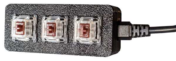 Oprócz samego modułu Arduino potrzebne są oczywiście przyciski do sterowania układem. Można zamontować dowolne dwuwyprowadzeniowe przyciski chwilowe. Autor zastosował przyciski Gateron Brown, stosowane w klawiaturach mechanicznych dla komputerów PC, jednak można zastosować dowolne inne przyciski, które będą wygodne w tym rozwiązaniu.