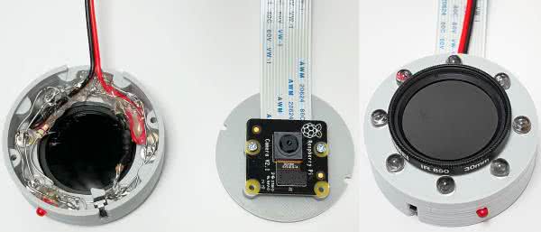 Autor stosuje oświetlacze o długości emitowanej fali równej 850 nm. Są one niewidoczne dla ludzkiego oka, jednak doskonale widoczne dla zastosowanej kamery – modułu NoIR, czyli bez filtra, klasycznej kamery przeznaczonej do Raspberry Pi. Całość uzupełnia filtr pasmowy 850 nm, który sprawia, że do kamery dociera tylko promieniowanie o takiej długości fali.
