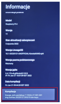 W sieci nie ma oficjalnej kompilacji Android TV na moduł Raspberry Pi 4, ale można znaleźć na stronie konstakang.com działające nieautoryzowane kompilacje LineageOS (lineageos.org) na komputerek Raspberry Pi 4. Aktualnie można pobrać i zainstalować Android TV dla Raspberry Pi w wersjach 9, 10, 11 i 12 L – rysunek 3. Obraz systemu można pobrać tylko do użytku osobistego lub edukacyjnego – więcej o licencji na stronie creativecommons.org.