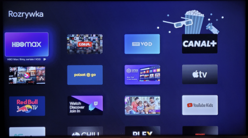 Jedyną aplikacją VOD z DRM, która działała w naszym Android TV jest aplikacja HBO GO i zastępująca ją aplikacja HBO Max. Po pobraniu, zainstalowaniu i zalogowaniu działa i odtwarza, ale raczej nie jest to HD. Ale jak już wspominałem tylko w wersji 10 systemu Android TV. Podobnie jest z serwisem YouTube. Działa też Kodi i najprawdopodobniej wiele innych aplikacji nie korzystających z technologii DRM.