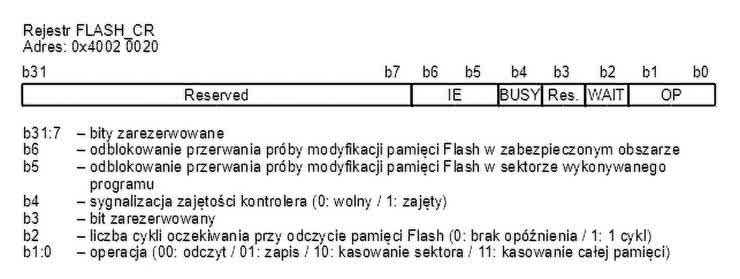 - adres rejestru flash_size_reg, w którym zapisany jest rozmiar zaimplementowanej w mikrokontrolerze pamięci Flash,