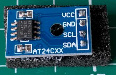 Jeśli nie mamy pod ręką odpowiedniej karty SD, a nadal chcemy dodać wymienne urządzenie pamięci masowej do swojego komputera, moduły EEPROM są świetną alternatywą. Przykładowy moduł tego rodzaju pokazany jest na fotografii 3. Linie SDA i SCL podłączane są do odpowiednich pinów mikrokontrolera – A4 i A5. Dodatkowo, do pamięci trzeba podłączyć zasilanie do linii VCC i GND. Sugerowane moduły powinny mieć 32 kB lub 64 kB pamięci.