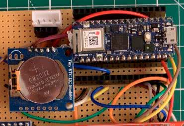 Płytka zegara czasu rzeczywistego (fotografia 4) jest podłączona do magistrali I²C komputera. Płytkę można umieścić tuż pod Arduino nieco w prawo, jak pokazano na rysunku.