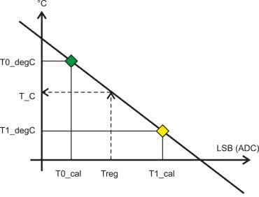 T_C = ((float)(Treg – T0_cal))/(T1_cal – T0_cal)
