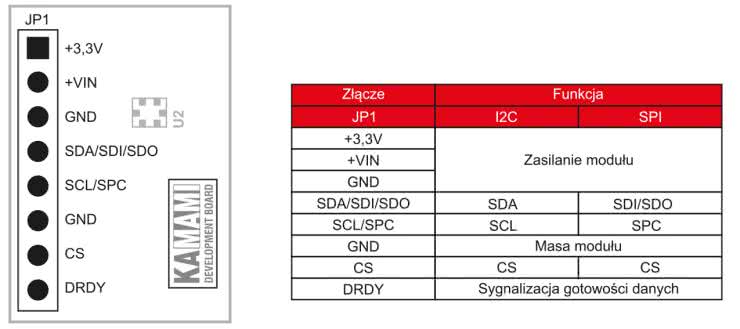 Moduł KAmodHTS221 ma wymiary 14×15×3 mm i podobnie, jak w przypadku KAmodLPS331, na dłuższej krawędzi umieszczono punkty lutownicze z wyprowadzeniami w rastrze 2,54 mm (rysunek 13).