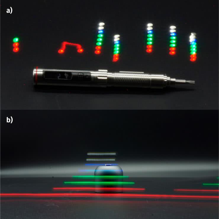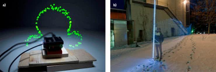 Zaprogramowany sensor można od razu użyć do malowania światłem. Aparat konfigurujemy do bardzo długiej ekspozycji (ustawiając stosownie wszystkie inne parametry: wartość ISO, przysłonę itd.), najlepiej w ciemności. Przesuwamy następnie modułem w miejscu, gdzie chcemy obrazować pole magnetyczne. Wyniki takiego działania pokazano na fotografii 7.