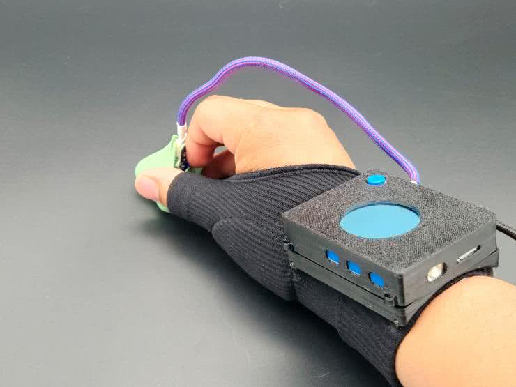 - Urządzenie noszone, które może wykrywać pola magnetyczne w otoczeniu i steruje diodami LED umieszczonymi na dłoni użytkownika.