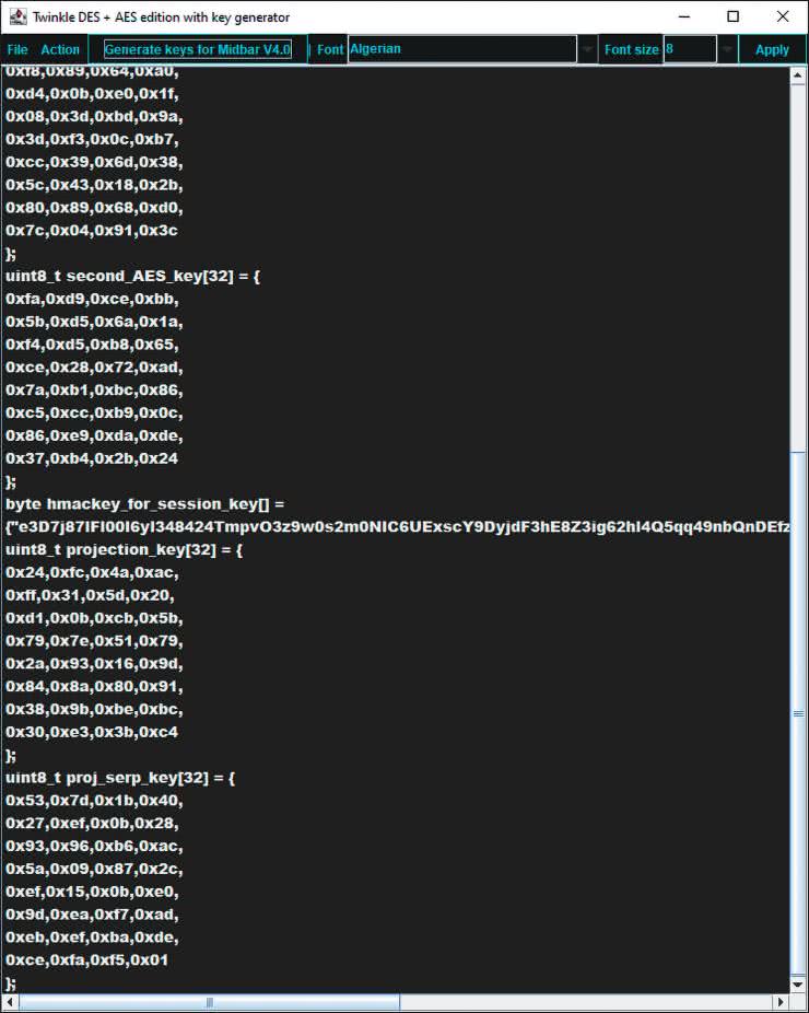 Aby nieautoryzowane odszyfrowanie danych przechowywanych w magazynie było obliczeniowo niemożliwe - kluczowe jest wygenerowanie własnych kluczy i nieużywanie ich ponownie - klucze są jednorazowe. Sposób generowania kluczy zależy wyłącznie od nas - można wymyślać je samodzielnie, wygenerować losowo itp. Autor zastosował jeden ze swoich starszych projektów, aby działał jako generator liczb losowych. Wygenerowane w ten sposób dane wyjściowe wydają się wystarczająco losowe, ale nie przeprowadził on żadnych testów, nie może więc zagwarantować, że wygenerowane dane są na pewno w pełni losowe. Generator ten znajduje się w repozytorium w folderze ESP32_Version\V4.0\Untested RNG. Uruchamiamy gen.exe i wybieramy przycisk Generate keys for Midbar V4.0 (rysunek 4).