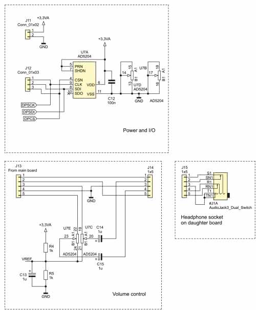 Ponadto potrzebne będą elementy dyskretne: dwa oporniki 10 kΩ, opornik 1 kΩ i trzy kondensatory elektrolityczne o pojemności 1 μF każdy. Ich napięcie pracy nie jest zbyt istotne, o ile będzie wyższe od napięcia występującego w układzie. Z uwagi na to, że większość kondensatorów elektrolitycznych dostępna jest z napięciem pracy 6,3 V i wyżej, nie powinno być to problemem.