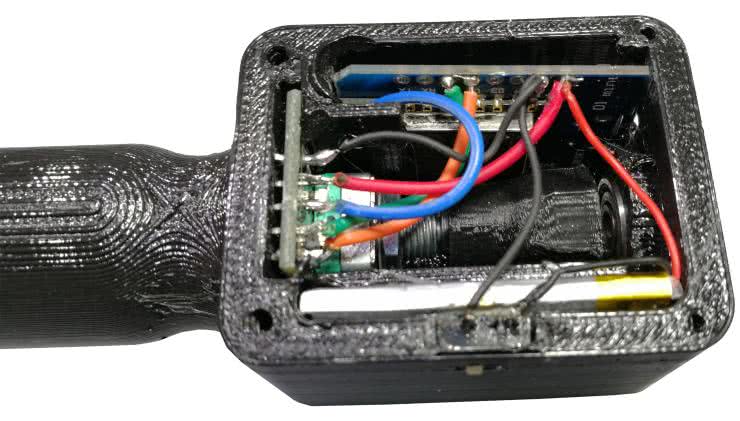 Wszystkie elementy dobrze jest przetestować przed zlutowaniem. Po połączeniu elementów (jak pokazano na schemacie na rysunku 1) można umieścić elektronikę w uchwycie, jak pokazano na fotografii 4. Pozwoli to na dopasowanie długości przewodów do wzajemnego ułożenia poszczególnych modułów.