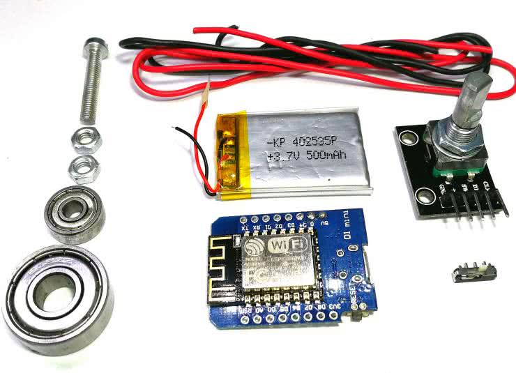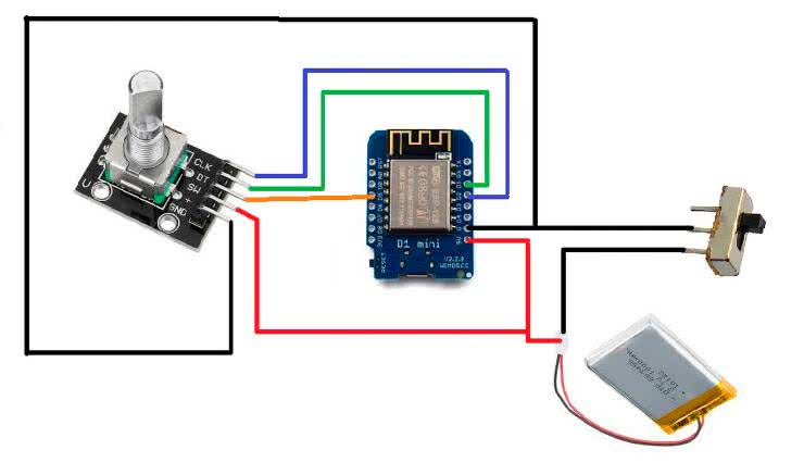 Obwód nie jest skomplikowany. Zasadniczo składa się z modułu Wemos, enkodera i baterii. Mówiąc dokładniej, do zestawienia omawianej inteligentnej skakanki potrzebne są: