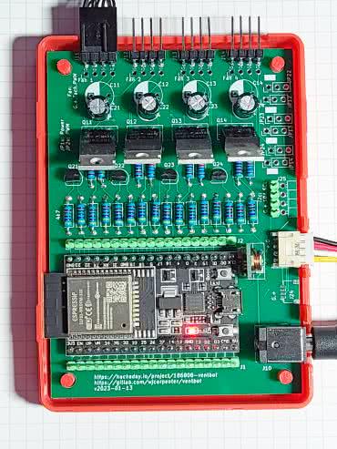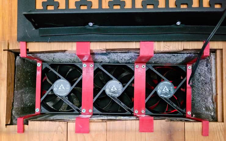 Obudowa dla układu może być wykonana na drukarce 3D. Na stronie z projektem znajdują się pliki z elementami do druku. Oprócz obudowy dla elektroniki na drukarce 3D wydrukować należy wsporniki do trzymania wentylatorów razem i instalowania ich we wnęce wentylacyjnej.