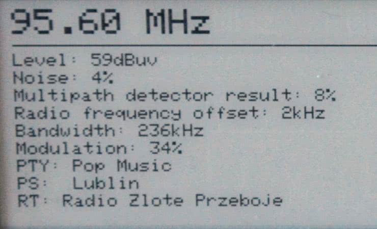 Wciskając gałkę enkodera w trybie Threshold, przechodzimy do trybu Parameters. Wyświetlają się tutaj parametry dotyczące jakości odbioru aktualnej stacji oraz dane z RDS (fotografia 1).