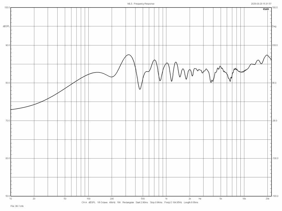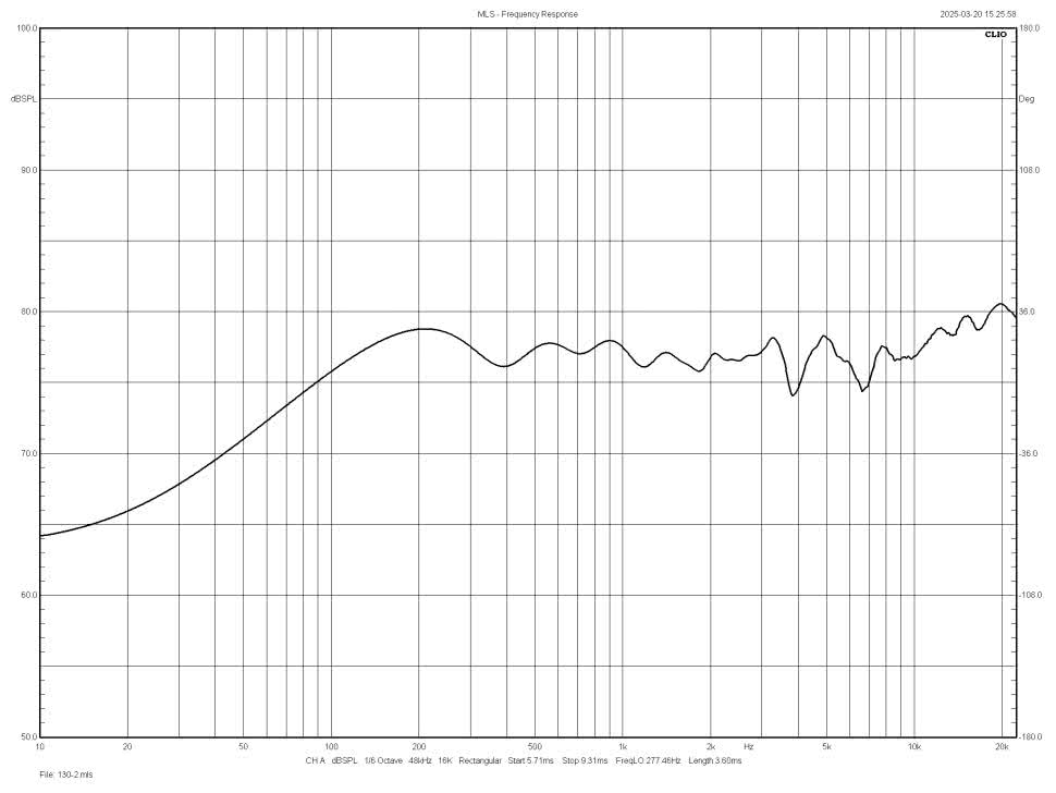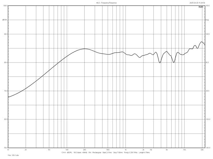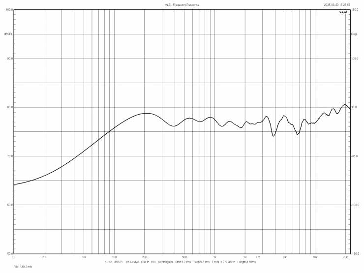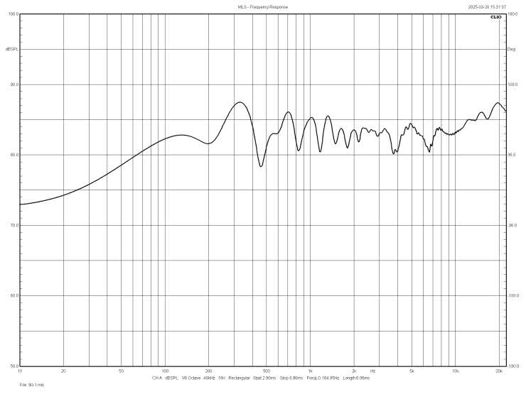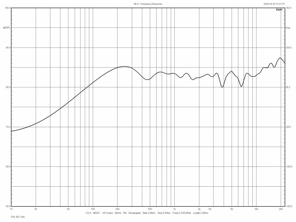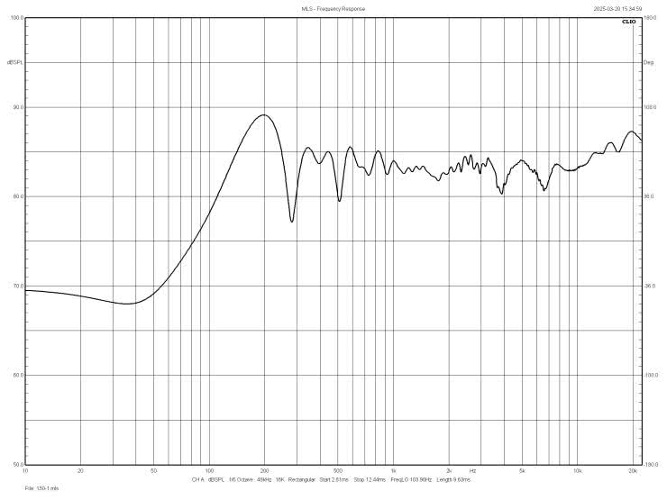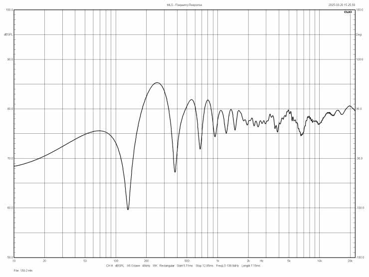Pomiar zespołów głośnikowych metodą MLS nie może objąć całego pasma akustycznego; jest wyraźnie ograniczony od strony niskich częstotliwości, w praktyce, w zależności od sytuacji (warunków, w jakich przeprowadzamy pomiar, dokładności, z jaką chcemy charakterystykę zobaczyć, konstrukcji zespołu głośnikowego) dolna częstotliwość graniczna pomiaru zawiera się w granicach 300…700 Hz. A co z niskimi częstotliwościami? Nimi musi zająć się pomiar w tzw. polu bliskim. Ale w następnym odcinku będziemy dalej ćwiczyć pomiar MLS, tyle że na trudniejszych przykładach układów wielodrożnych (z rozsuniętymi przetwornikami).