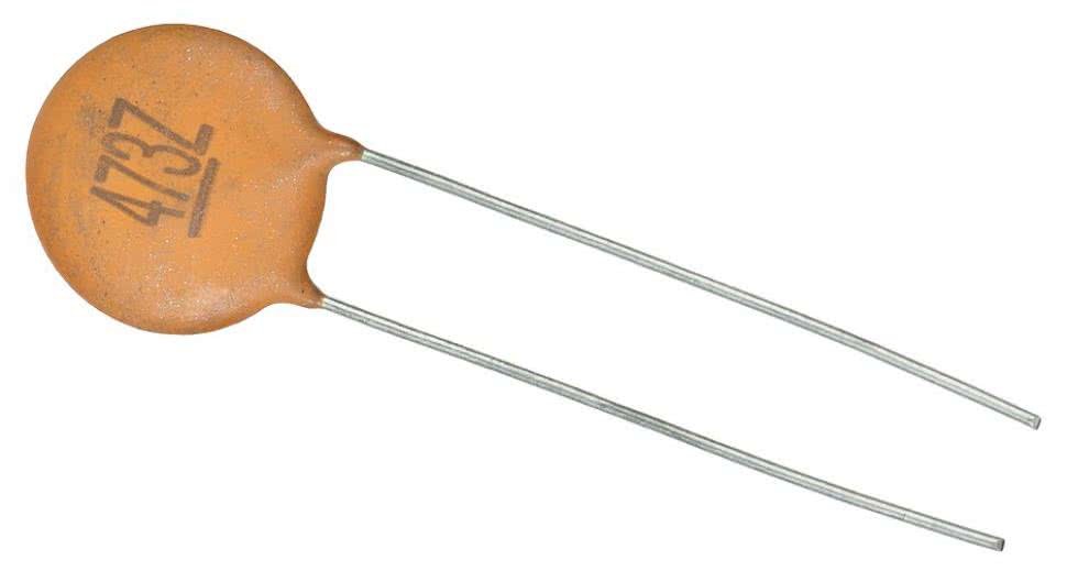 Na koniec warto również wspomnieć o jeszcze jednym rodzaju kondensatorów – ceramicznych, brązowych „piegach”, które zna niemal każdy z nas, zwłaszcza z tanich urządzeń RTV z lat dziewięćdziesiątych (fotografia 4). Ich cena jest atrakcyjna, bo wynosi z reguły kilka groszy za sztukę, lecz warto zwrócić uwagę na pojemność, która może się wahać w przedziale od –20% do +80% względem nominalnej. Opisywane elementy są też z reguły wykonywane z dielektryków X7R lub Y5V, cechujących się efektem ferroelektrycznym. Tylko te o niewielkich pojemnościach, rzędu pikofaradów, zawierają dielektryk C0G, choć i wtedy ich tolerancja pojemności wynosi ±20% lub, w najlepszym wypadku, ±10%. Ze swojej strony dodam, że nie lubię ich ze względu na bardzo cienkie wyprowadzenia, które łatwo się zginają w czasie montażu lub testów prototypu, a po kilku zgięciach pękają. Pod tym względem zdecydowanie lepsze są pokazane wcześniej kondensatory monolityczne.