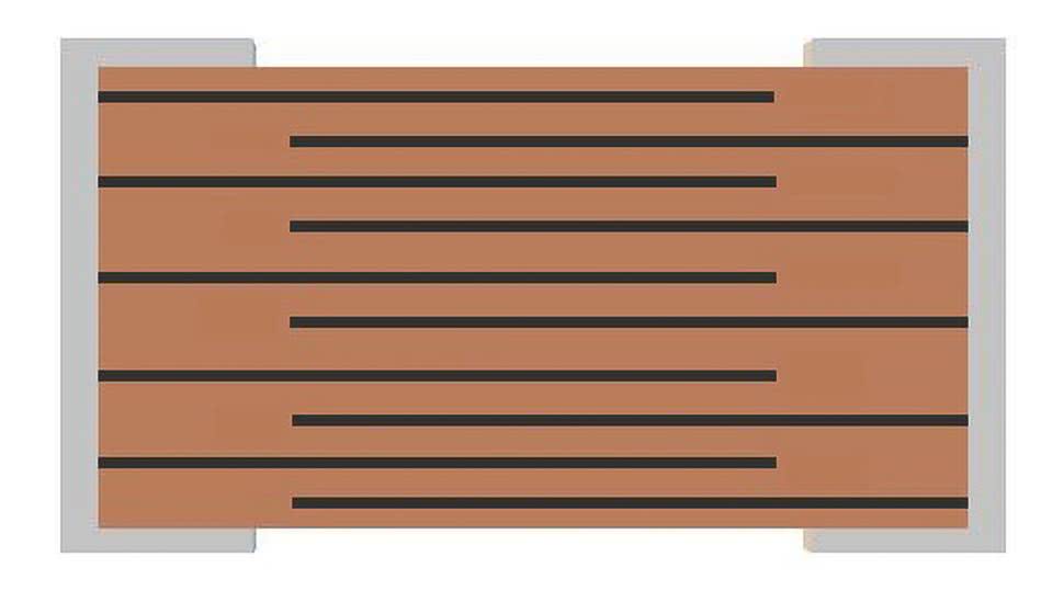 Budowa takiego kondensatora nie odbiega znacząco od tego, co poznaliśmy w szkole średniej – rysunek 5. Jednak klucz kryje się tutaj w dielektryku, który składa się z domen ferroelektrycznych. Pod wpływem zewnętrznej polaryzacji zaczynają się one ustawiać w jednym kierunku (przeciwnie do polaryzacji, zgodnie z prawem przyciągania elektrostatycznego), przez co ich pojemność maleje. Poza tym pojemność ta ma inną wartość, gdy zmienimy polaryzację napięcia przyłożonego do kondensatora, ponieważ nie wszystkie domeny się odwrócą – lecz nie jest to tak dotkliwy problem, jak zmiana pojemności pod wpływem napięcia. Może się okazać, że doskonale dobrany kondensator sprzęgający, o pojemności nominalnej np. 10 μF, tak naprawdę w rzeczywistym układzie ma tylko 2 μF… Kondensatory MLCC jako elementy odsprzęgające zasilanie są jak najbardziej w porządku, ale do samego sygnału analogowego lepiej ich nie dopuszczać. Dotyczy to zwłaszcza dielektryka X7R, który jest używany do budowy kondensatorów o największych pojemnościach. Po przeciwnej stronie barykady mamy dielektryk C0G, który z kolei wykazuje bardzo wysoką stabilność pojemności w funkcji napięcia, tyle że kondensatory zbudowane z jego użyciem osiągają niewielką pojemność, na ogół nie wyższą niż kilkanaście nanofaradów.