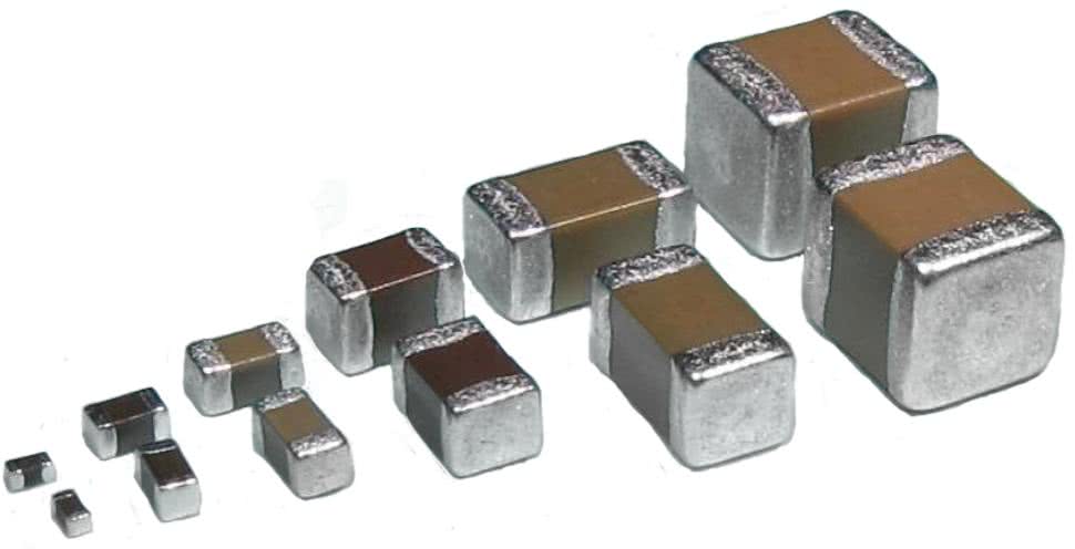 Jest jeszcze jeden rodzaj kondensatorów, których bardzo nie lubię w niektórych zastosowaniach – wielowarstwowe kondensatory ceramiczne, znane pod akronimem MLCC. Te niewielkie elementy w obudowach do montażu powierzchniowego – jak na fotografii 2 – potrafią osiągać całkiem duże pojemności, rzędu 100 μF, w obudowie wielkości główki zapałki. To, co daje im możliwość uzyskiwania tak imponujących pojemności, jest jednocześnie ich przekleństwem, bowiem chodzi o efekt ferroelektryczny.