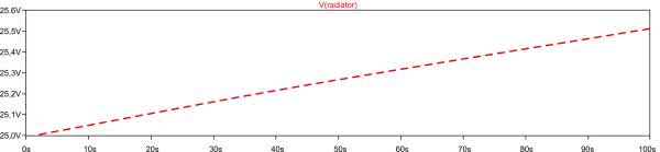 Oznacza to, że będziemy logować wszystkie wartości od 0 s do 100 s. Wyniki symulacji obrazowane są w postaci wykresów zadanego parametru w funkcji czasu. Na rysunku 4 został pokazany wykres temperatury radiatora w funkcji czasu.