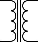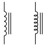 Na rysunku 3 pokazano symbol ideowy transformatora, a fotografia 3 pokazuje różne wykonanie elementów tego typu. Widać, że symbol tego elementu odpowiada jego konstrukcji – są to dwa symbole cewki indukcyjnej połączone wspólnym rdzeniem.